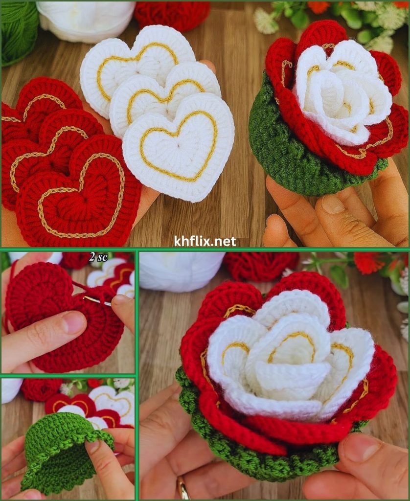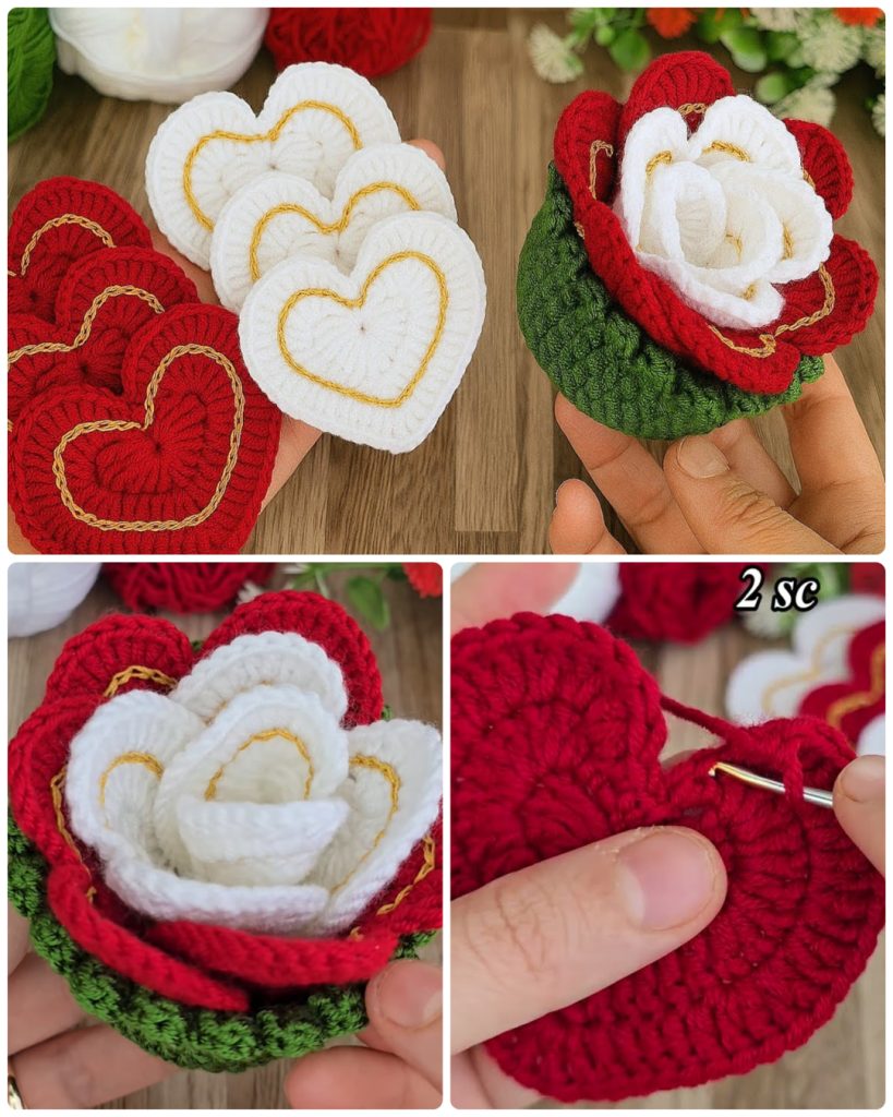 Crocheting hearts and assembling them into a rose is one of the most beautiful and meaningful projects you can make. Each heart-shaped petal represents love, care, and creativity—coming together to form a stunning, realistic decoration that can be used in countless ways.