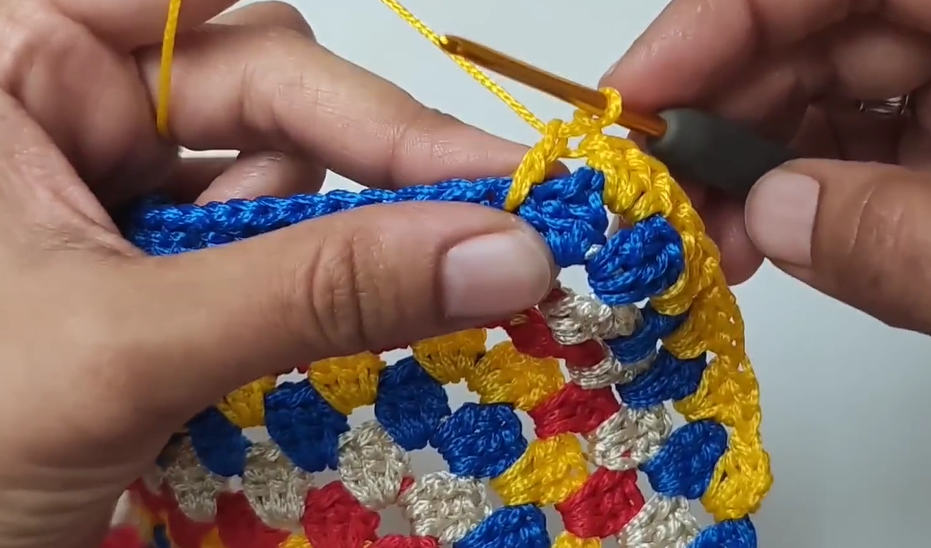 - V-stitch in every 3rd stitch (DC, CH 1, DC in the same stitch)