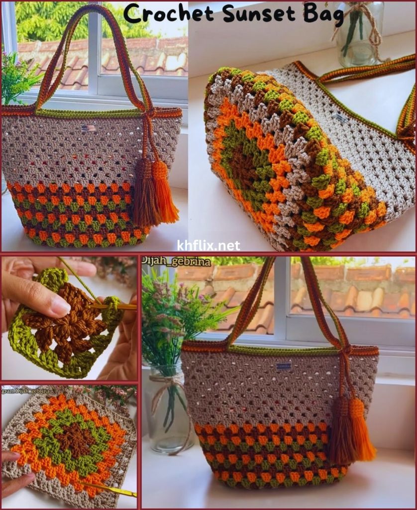 The Crochet Sunset Granny Square Bag is a stunning, colorful project that blends tradition with modern style. With simple granny squares and a beautiful sunset palette, you can create a functional tote that becomes a daily favorite.