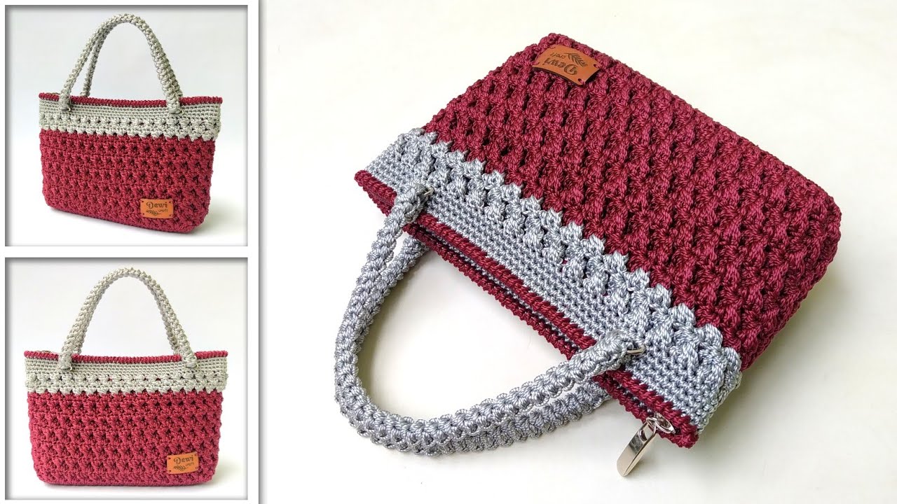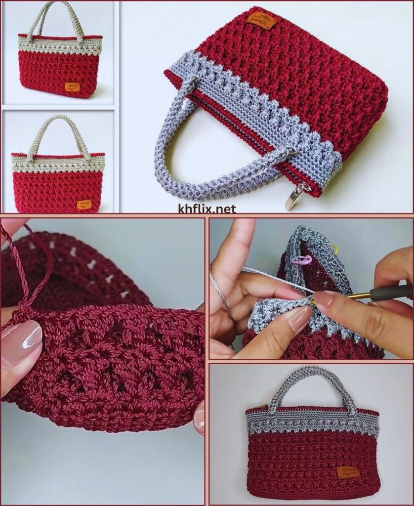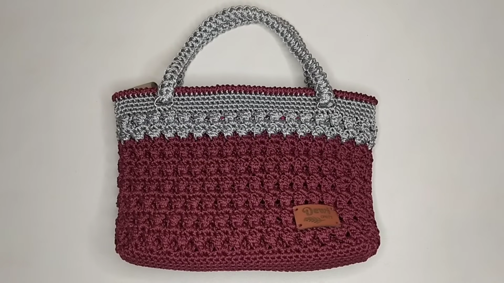 Crochet handbags have become a favorite DIY project for crafters because they’re stylish, sturdy, and fully customizable. The bag in the image is a beautiful two-color handbag featuring a rich textured stitch at the bottom, a decorative stitch pattern at the top, and strong durable handles.