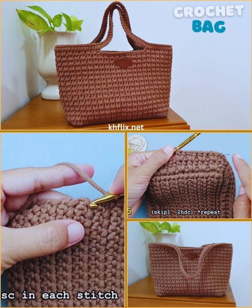 This handbag tutorial uses simple crochet stitches, perfect for beginners: