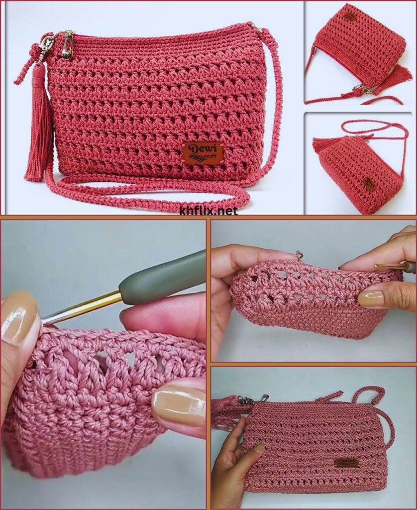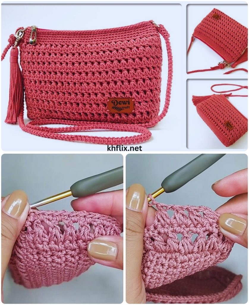 Crochet bags are one of the most loved handmade accessories because they combine beauty, creativity, and practicality. A well-made crochet bag can be used every day, styled with different outfits, and even gifted as a meaningful handmade item. The bag shown in the image is a wonderful example of a textured crochet shoulder bag with a neat stitch pattern, structured shape, zipper closure, tassel detail, and long strap.
