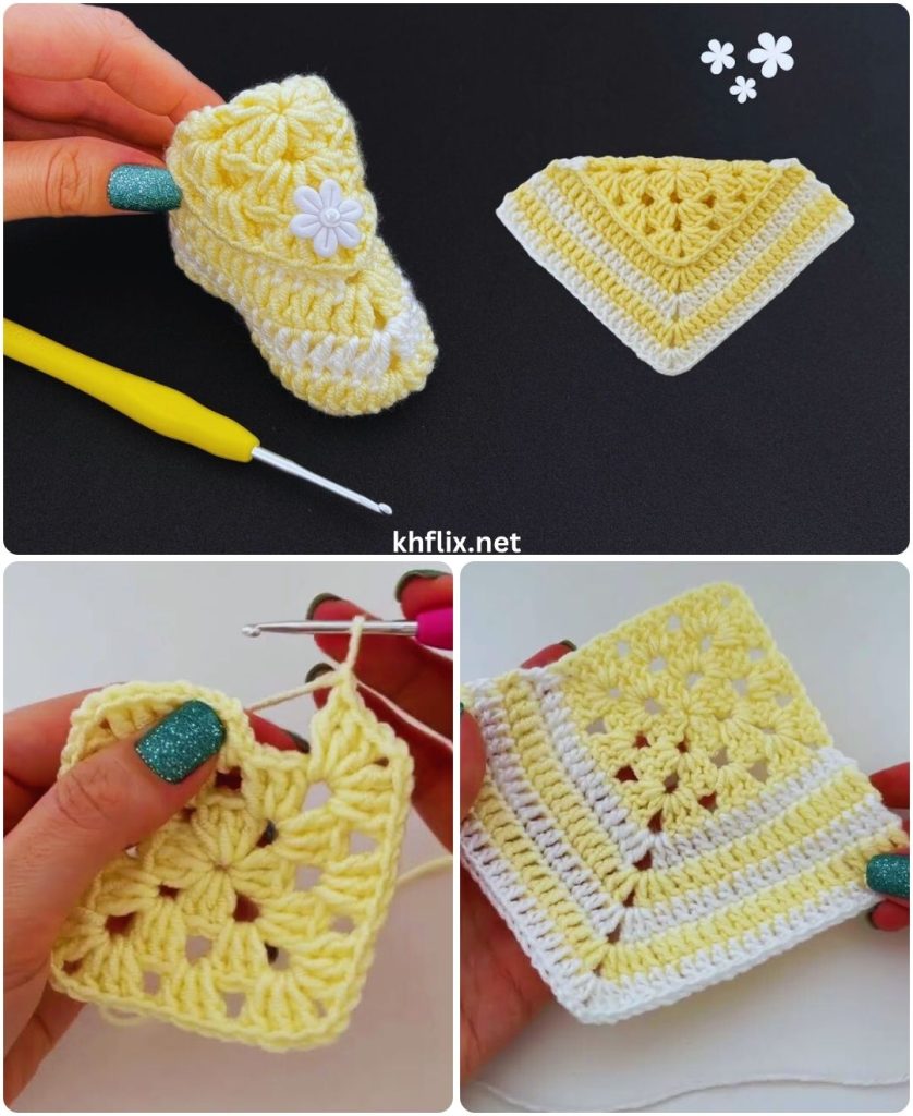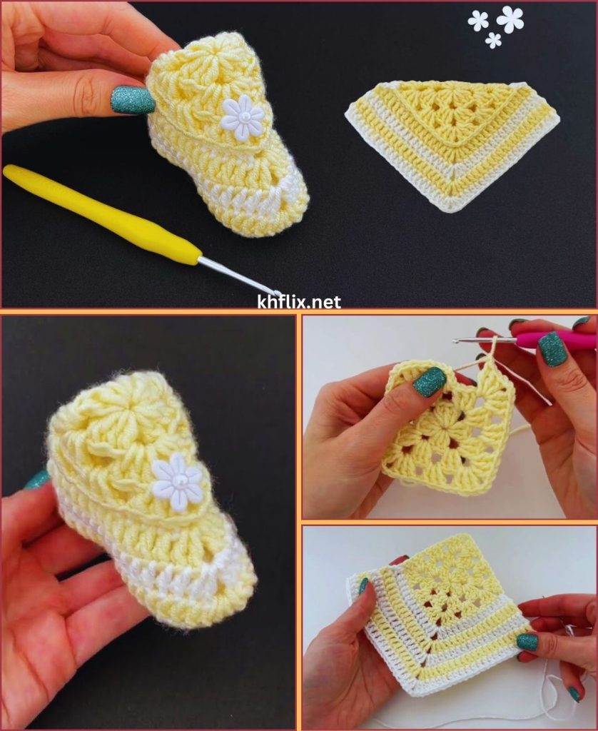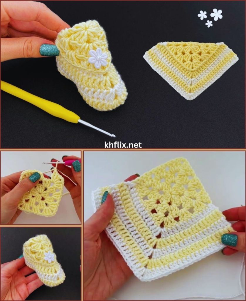 The crochet shoe model with a square is a perfect beginner project that transforms a simple crochet square into a functional and stylish shoe. It teaches important skills such as shaping, folding, and joining, while remaining easy and fun.