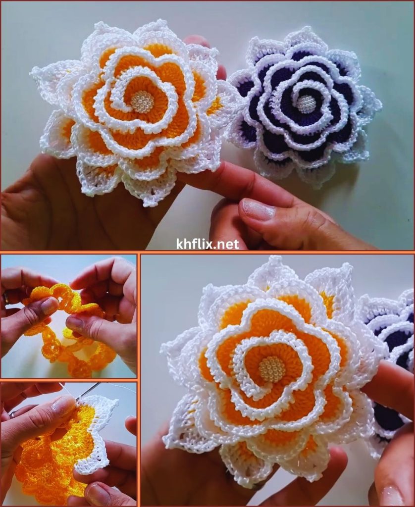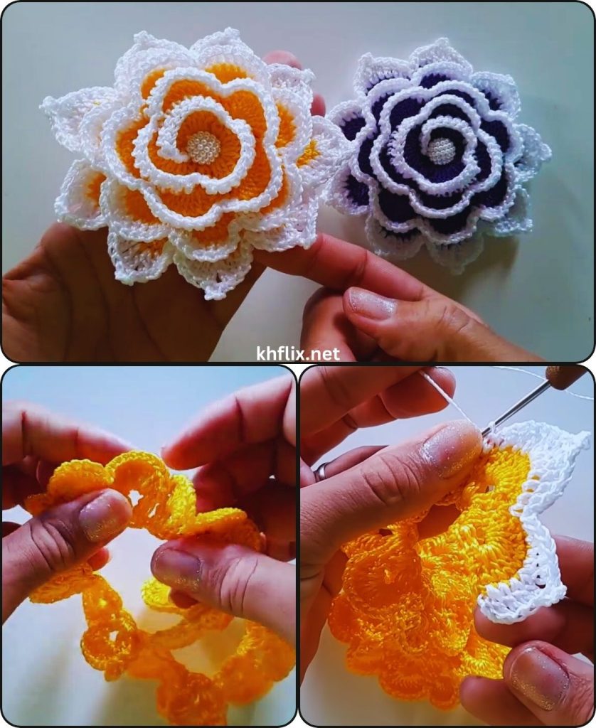 Crocheting a two-color rolled rose is a beautiful and creative crochet technique that produces a realistic, layered flower. The combination of two yarn colors makes the rose look more detailed and visually appealing compared to a single-color crochet rose. This method is especially popular among crocheters who enjoy making decorative flowers for accessories, clothing, and home decoration.