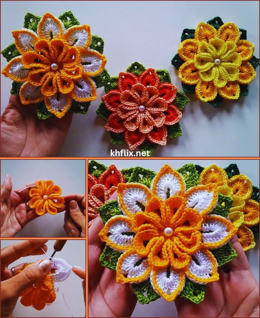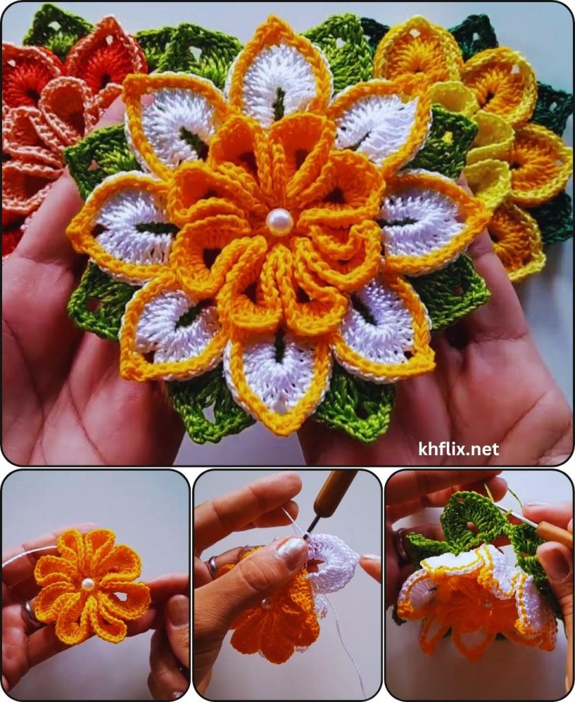 In this detailed step-by-step guide, you’ll learn how to create a graceful, slightly 3D crochet flower appliqué that remains lightweight yet visually rich—perfect for beginners ready to level up their skills 🌸