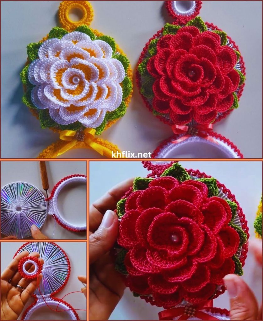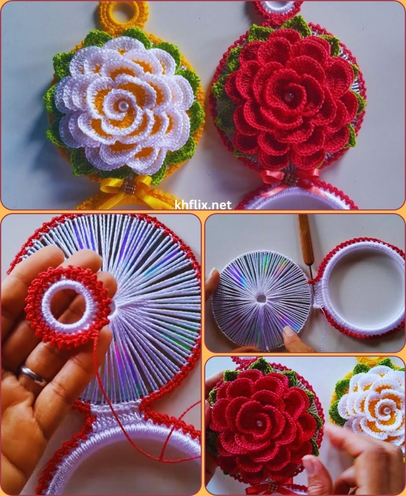 A crocheted dish towel holder with a CD is a simple yet highly practical project. It’s perfect for beginners and also a great way to use leftover yarn and recycle old CDs.